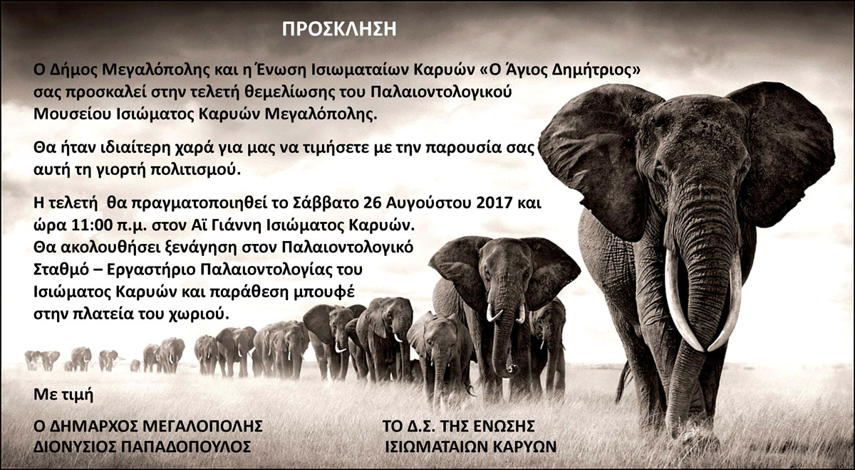 Γιορτές θεμελίωσης Παλαιοντολογικού Μουσείου Ισιώματος Καρυών Μεγαλοπόλεως – Εγκαίνια ξενώνα Ισιώματος Καρυών.
